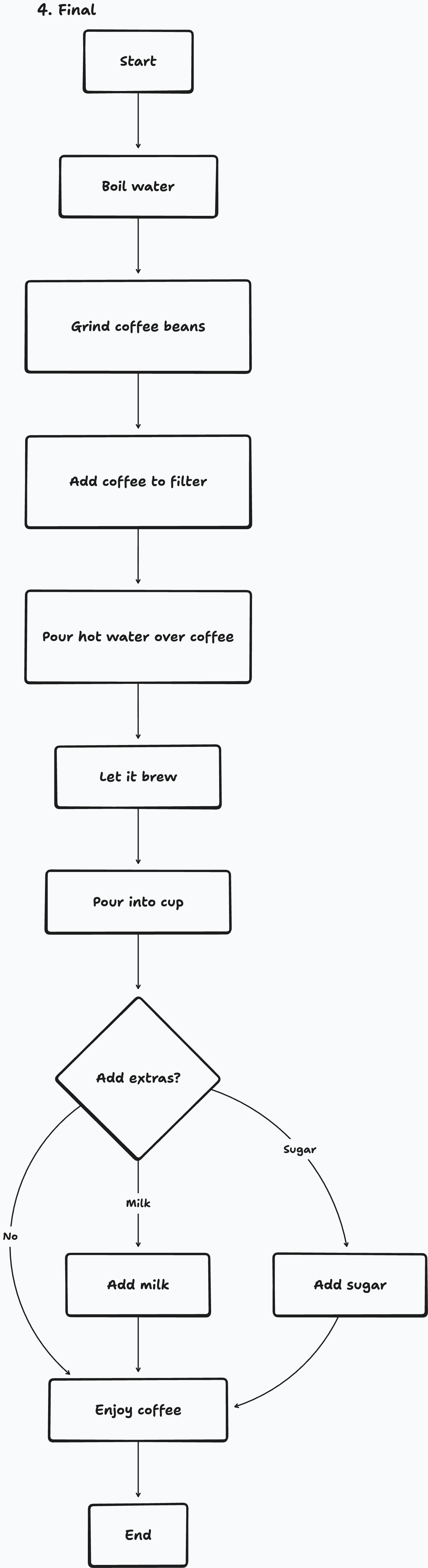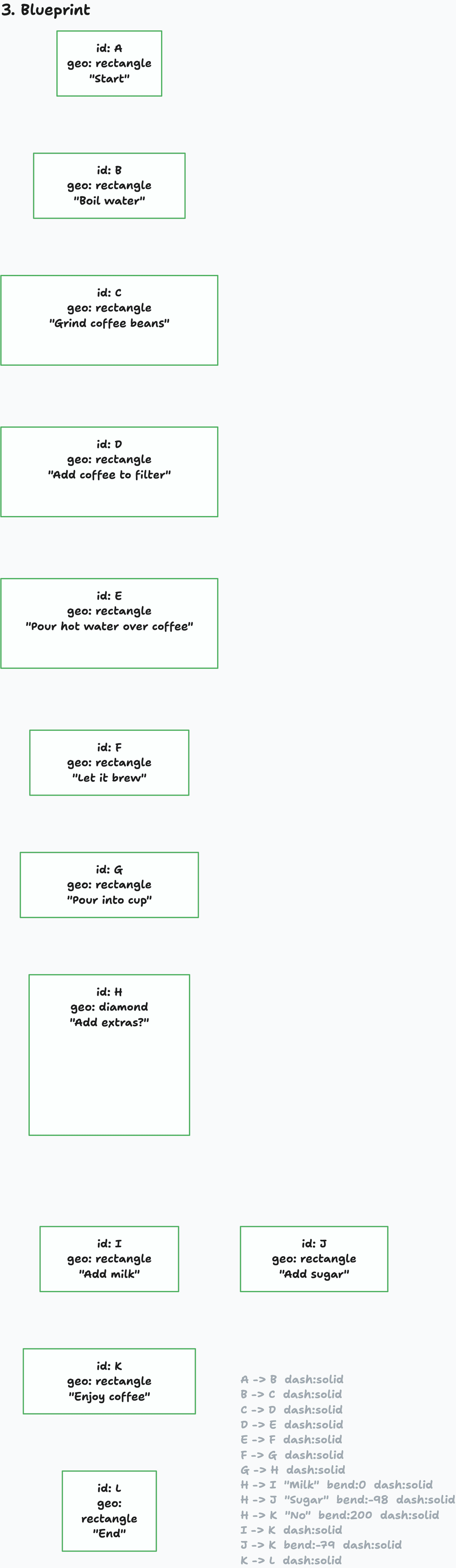 And then hand it off to a library to turn it into a flowchart showing the process of making coffee.